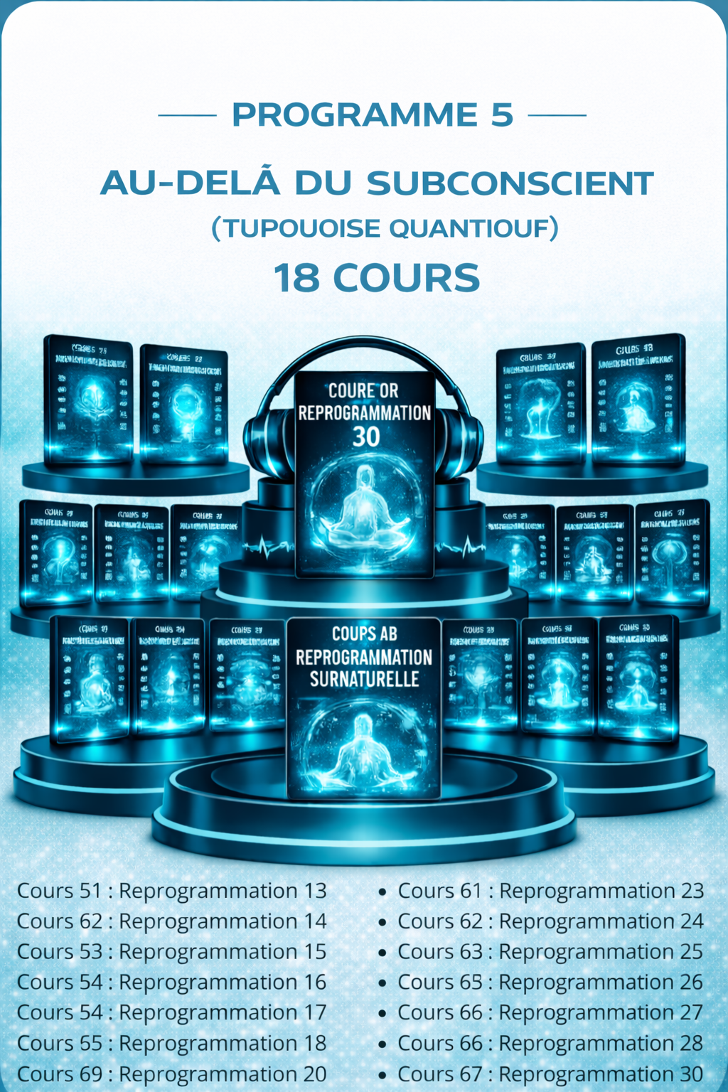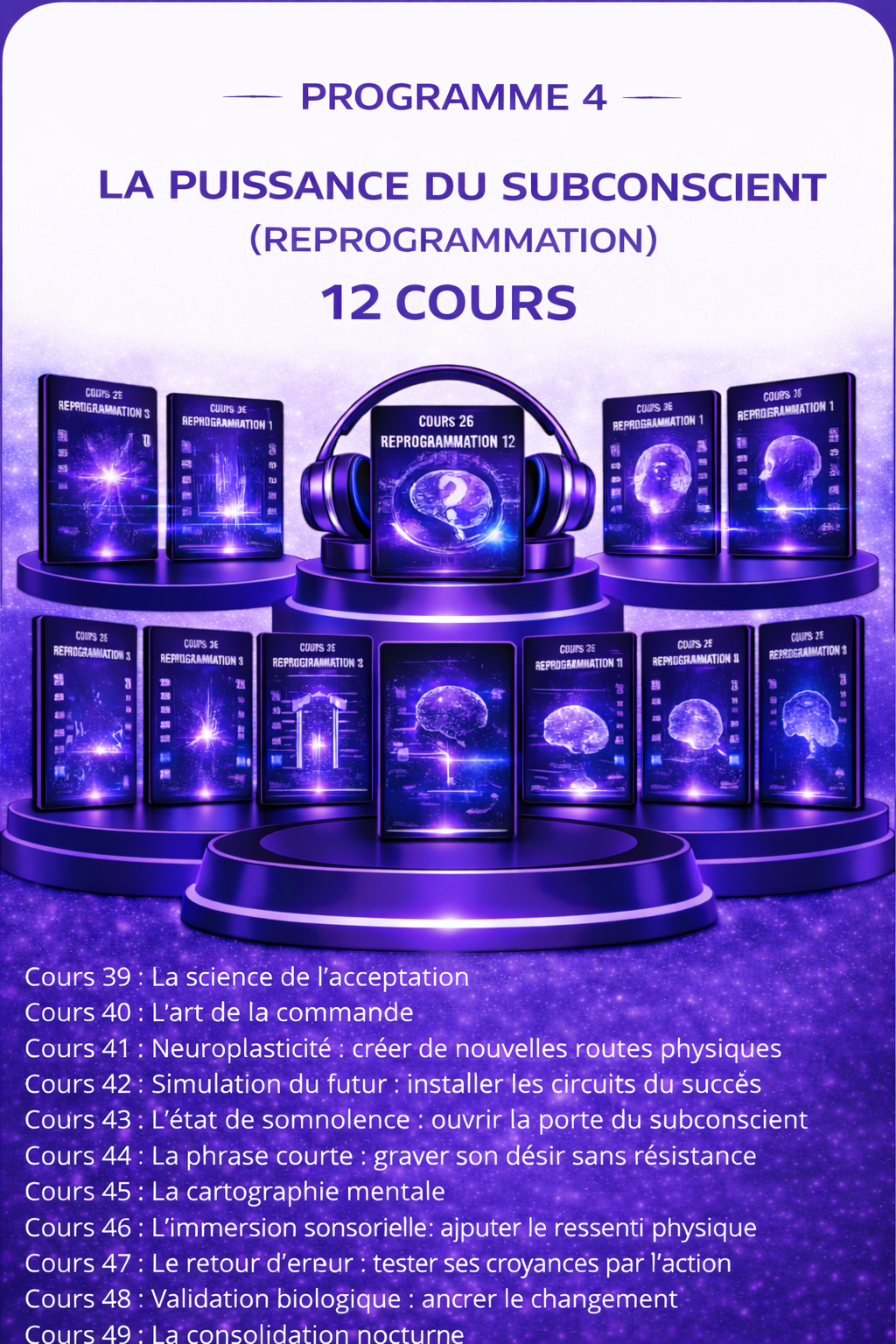 Dans ces 12 cours, tu apprends à parler au subconscient dans son propre langage. Pas avec la volonté. Mais avec des mécanismes qu’il ne peut pas refuser.